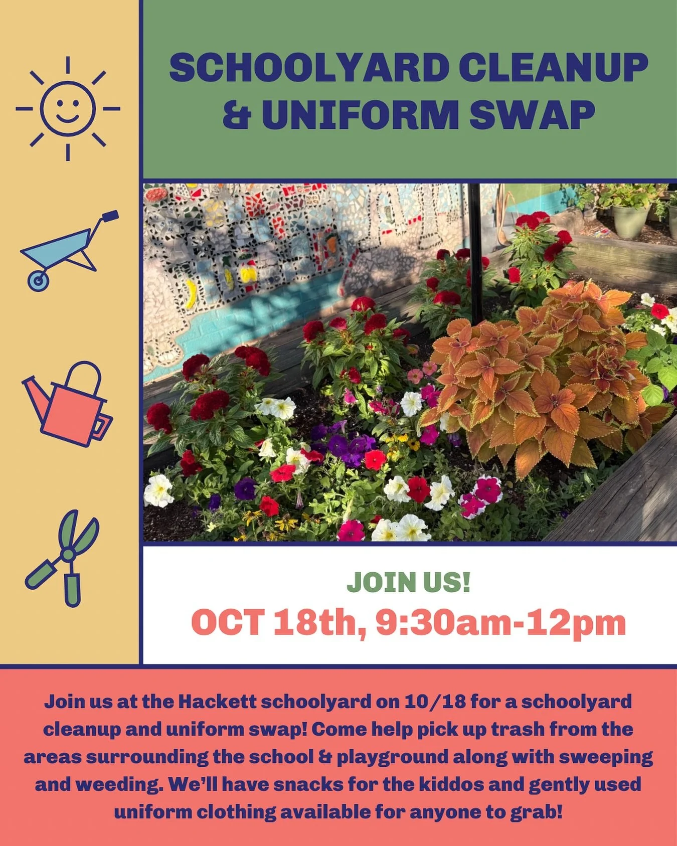 We are a group of volunteer community members interested in helping our local elementary school, Horatio B. Hackett School. As a non-profit organization we run fundraisers and community events, and provide support to Hackett as needed. We work closely with Hackettβs principal, teachers, and staff, to ensure our work supports the needs and goals of the school and students. In a typical year, we host a block party to start out the school year and about twenty other events that span the school year and summer. These events range from movie nights to gardening days, from happy hour fundraisers to providing a thank-you meal for teachers and staff.